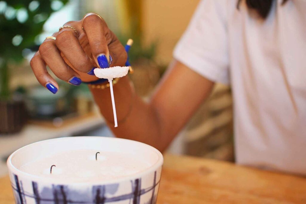 The only part of the pearls that melt are the ones in a ring right around the wick. After you’re done burning, you can extinguish the candle and then remove the wick. The 18 oz candle I selected came with 30 wicks, but you don’t need to throw them away after one use. Just clip off the burnt portion and keep re-using.